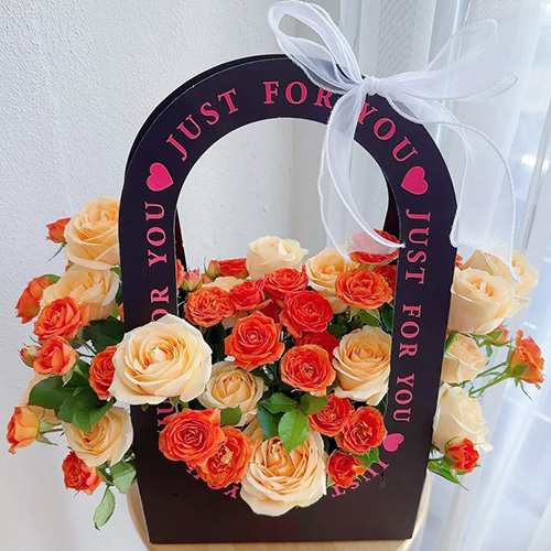 【温暖如你】15枝香槟玫瑰,7枝多头橙芭比,搭配尤加利叶装饰。