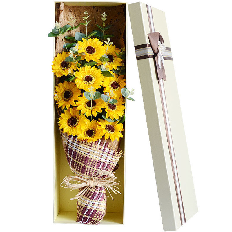 - 温情阳光 - 精选11支向日葵,搭配尤加利叶装饰。